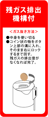 - 必ず中身を使い切ってからガス抜きをしてください。